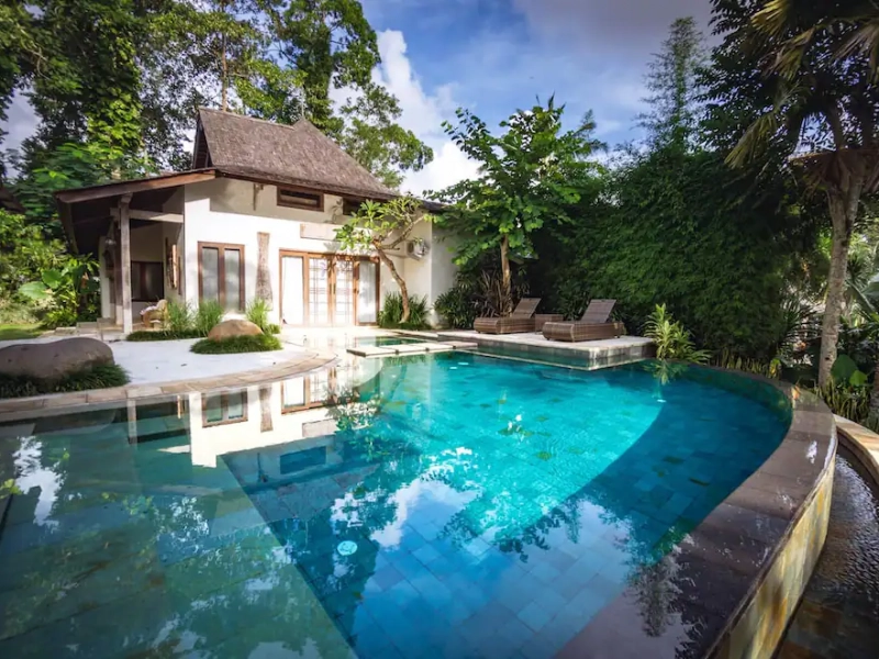 Villa Aalaya is 1.4 km from the main road of Ubud in the village of Kutuh Kaja. The Ubud Botanical Gardens is 500m further up our street, and the only gym in Ubud is 700m from our house.
