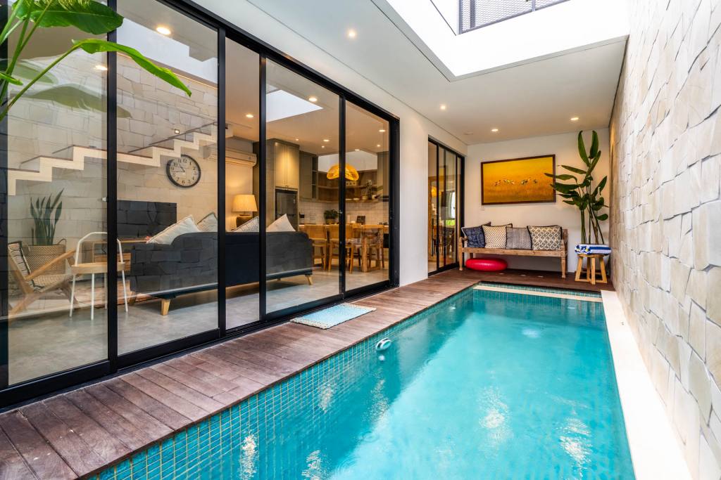 Brand-new villa only 10 mins away from Berawa Beach. Clean and fully furnished modern interiors with lots of light and total privacy in the center of Canggu. The space boasts a luxurious king size bed, fully equipped kitchen, fast wifi with Smart TV perfect for remote working and so much more. Everything you could need for your perfect globe trotting, perfect holiday is available in our...