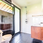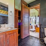 Poolside Room is an air-conditioned master bedroom of Villa Rumma Lanna Ubud with direct access to the pool. This spacious bedroom has a comfy queen-size bed, ensuite bathroom, walk-in closet with safety deposit box, a workspace, 42-inch flat-screen TV with cable access and HDMT connectivity, full “light-block” curtains sliding glass doors that open up to the poolside terrace, and dining area. The terrace space is perfect for yoga and meditation practice, and there are two pool chairs for relaxing between your swims.