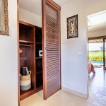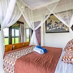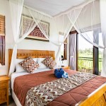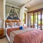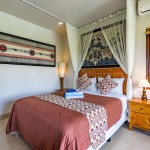 Sunrise Room is an air-conditioned en-suite bedroom of Villa Rumma Lanna Ubud, facing the east to catch the morning sun. The room’s balcony looks out over the villa’s pool and garden, across the magnificent Ubud rice fields to the distant mountains beyond. This bedroom has a comfy queen-size bed, a spacious closet with a safety deposit box for your valuables, a workspace, and all-encompassing “light-block” curtains for your privacy.